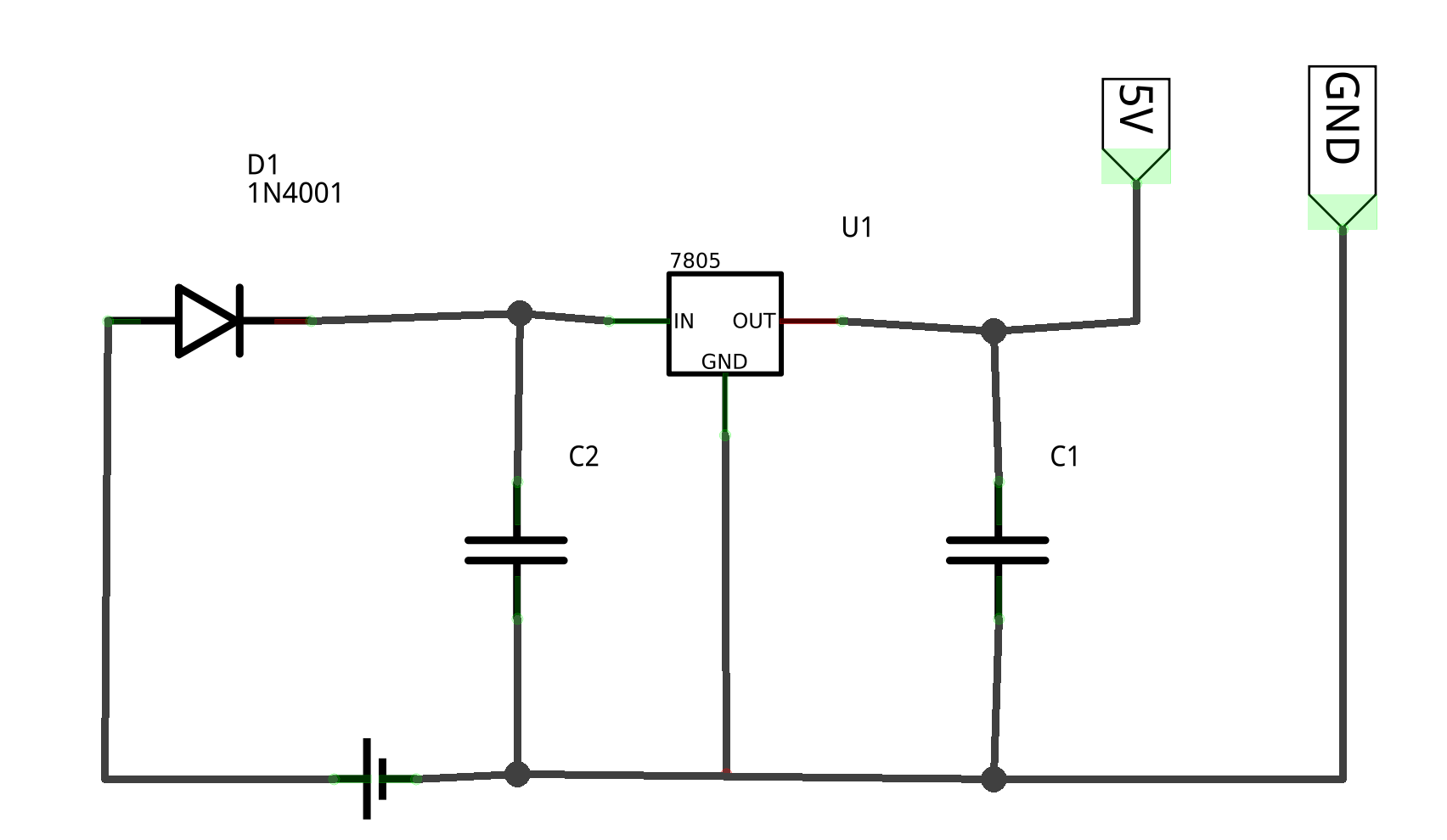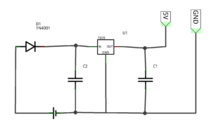 Además, para evitar posibles errores al conectar la fuente de alimentación hemos colocado un diodo que evitará que la corriente se mueva en una dirección incorrecta, lo que podría dañar los componentes que tienen polaridad.