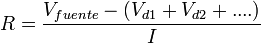 Aplicándola al caso particular de los led, tendríamos la siguiente formula: