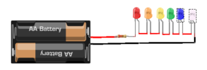 Para controlar la tensión que atraviesa nuestro led en un determinado momento solamente necesitamos colocar una resistencia en serie. Calcular el valor de esta resistencia es tan sencillo como aplicar la ley de Ohm
