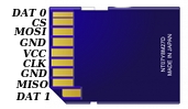 Ahora que sabemos como se comunica una tarjeta SD necesitamos saber donde esta cada uno de esos pines para poder usarlos, este es el pinout de una tarjeta SD: