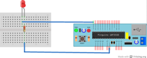 El circuito a controlar sería tan simple cómo la placa de Pingüino y un Led con su correspondiente resistencia: